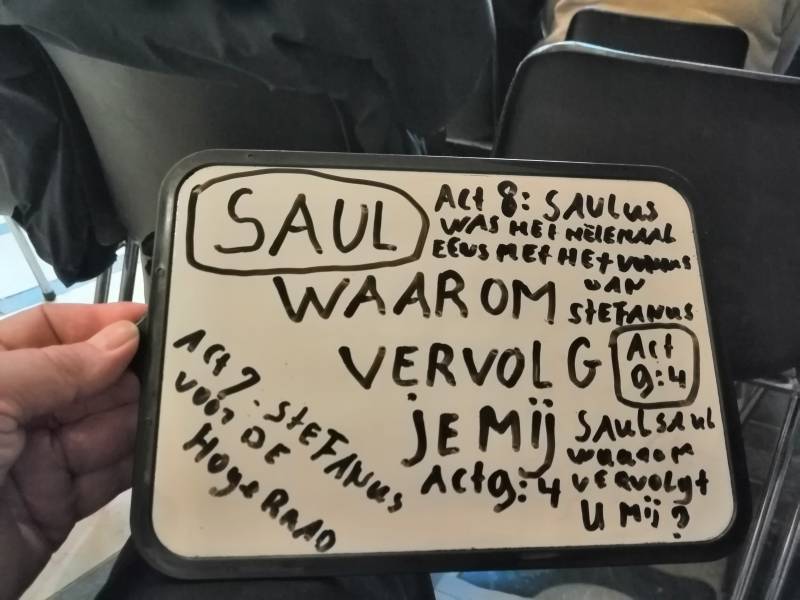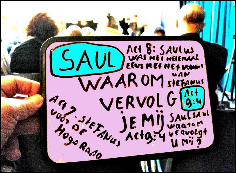 Saul's story appealed to me from the very beginning (when I heard of it - after 2006) and it was mentioned several times by Brother Ron during his talk. As a young man we come across Saulus the 1st time as the very fierce anti-Christ and he even strongly encouraged the stoning of the innocent and very conscientious Stephen. If we go along with the story of Saul, then we see that Saul becomes Paul and that he is the one who has written most of the New Testament, then this cannot possibly leave me undisturbed. During the entire convergence I have wanted to make many so-called HI-WI drawing, of which this is one.