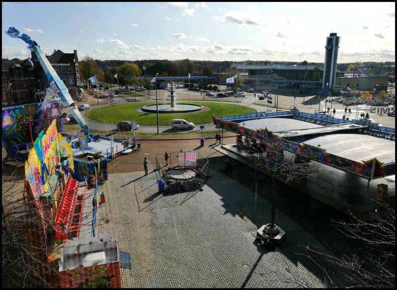 From Venlo train station, you can easily walk to the Limburgs Museum. It is across the street, the orange building.