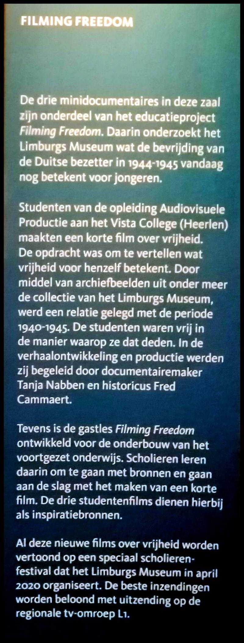VERVOLGENS EEN BEELD VAN "VREDE" NA DE INGRIJPENDE PERIODE IN NEDERLAND VLAK NA DE TWEEDE WERELD OORLOG, DIE UITGEDRUKT WERD IN DE KUNST EN DOOR JONGE RAPPORTAGEMAKERS MET NIEUWE MEDIA